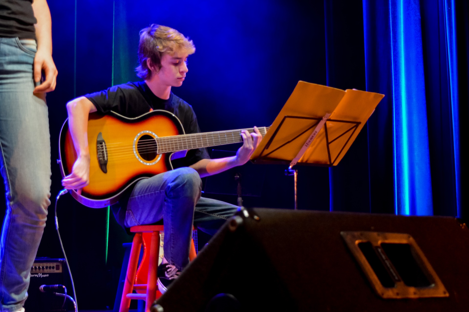 Organizamos as bandas de alunos aqui na escola. As bandas são formadas por exemplo: um aluno de bateria, outro de guitarra, piano, canto, etc. e, os ensaios acontecem uma vez por semana e com a orientação de um professor, o padrinho da banda. Apresentamos aqui no palco da escola, no Sgt Peppers, teatros e outros eventos. É muito divertido, o pessoal toca bem e ficam amigos.